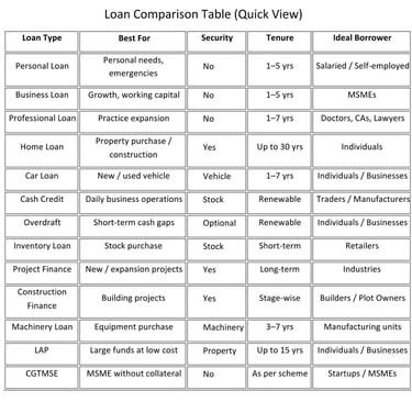 What it is: Government-backed collateral-free loan for MSMEs under CGTMSE scheme.